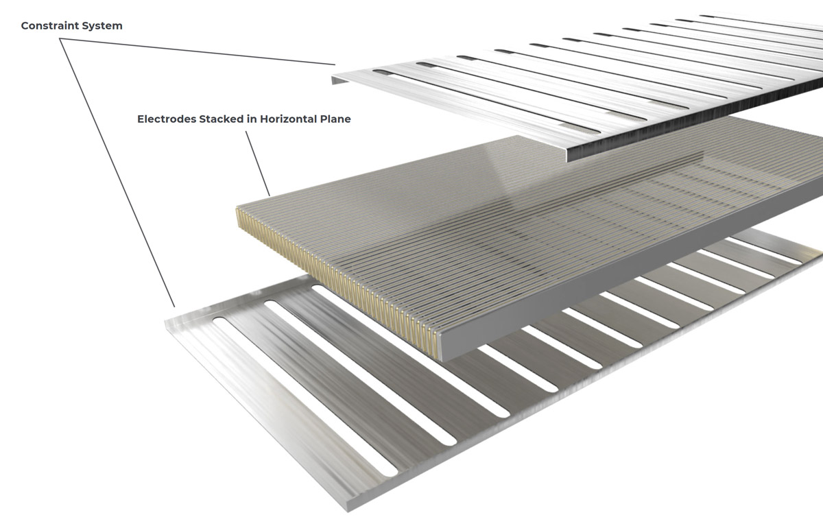 It does this by using a novel 3D cell architecture in which cathodes, anodes, and separators are precisely laser-patterned and stacked side-by-side.
