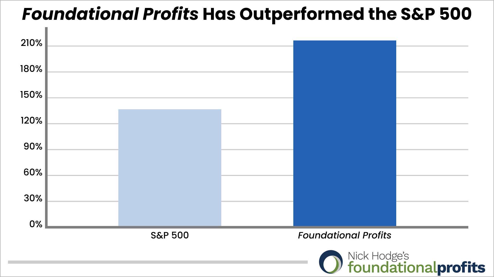Today, you’ll get all of the details on this opportunity in a new report I’ve compiled exclusively for you – and you’ll get it free of charge the moment you become a lifetime member of Foundational Profits.